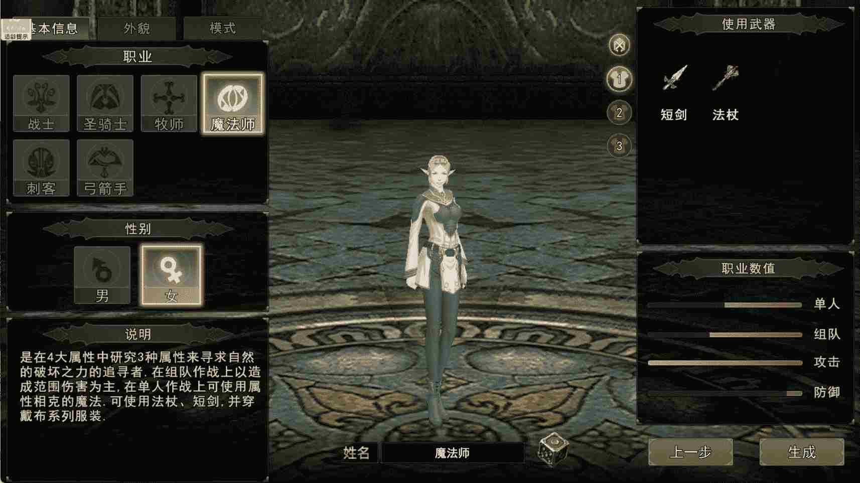 4. 魔法师:远程元素法术输出,智力成长最高,外观优雅灵动,主打大范围元素伤害,适配武器为法杖、短剑。