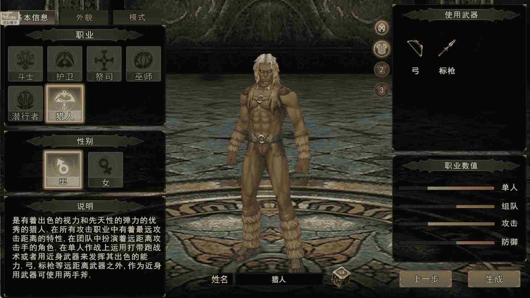 6. 猎人:远程物理输出,敏捷与幸运属性均衡,外观干练利落,擅长陷阱控制与远程打击,适配武器为弓、标枪。