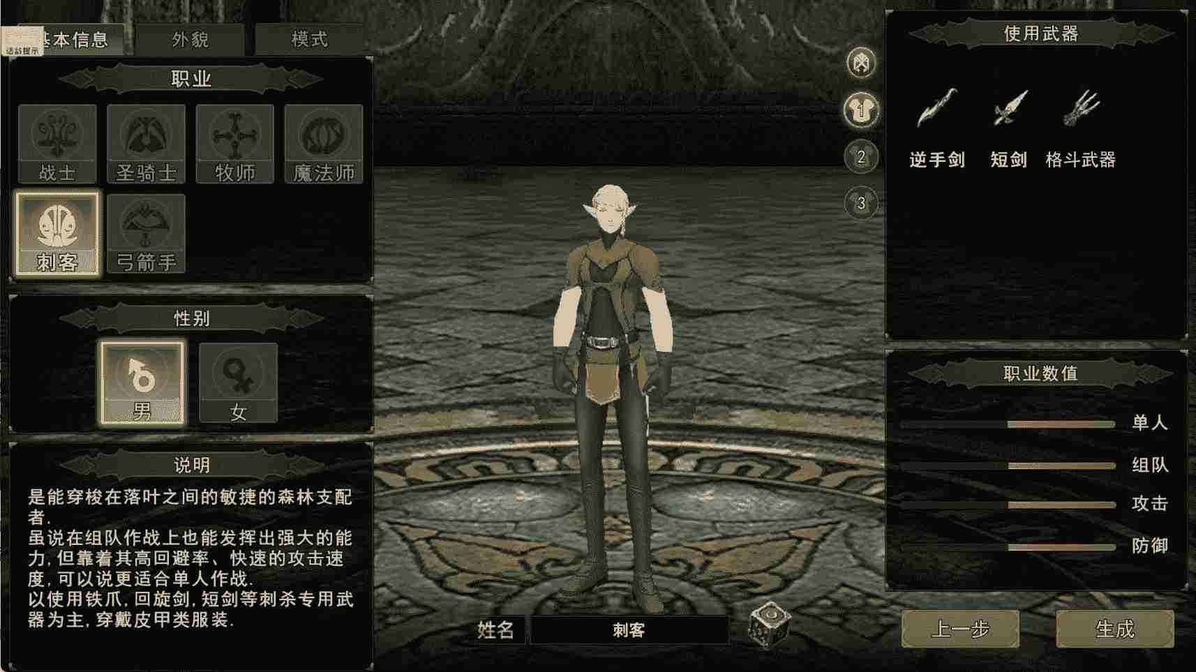 5. 刺客:潜行爆发输出,敏捷属性极致成长,外观迅捷利落,擅长绕后突袭与秒杀关键目标,适配武器为逆手剑、短剑、格斗武器。
