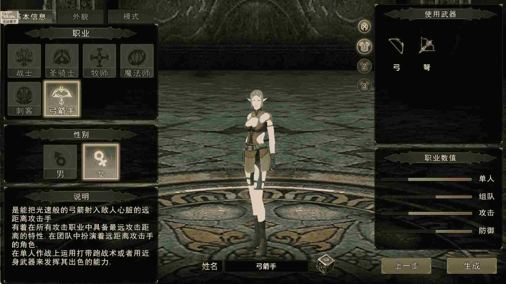 6. 弓箭手:远程稳定物理输出,幸运与敏捷属性均衡,外观轻盈潇洒,主打远程持续打击,适配武器为长弓、短弓、箭矢器具。